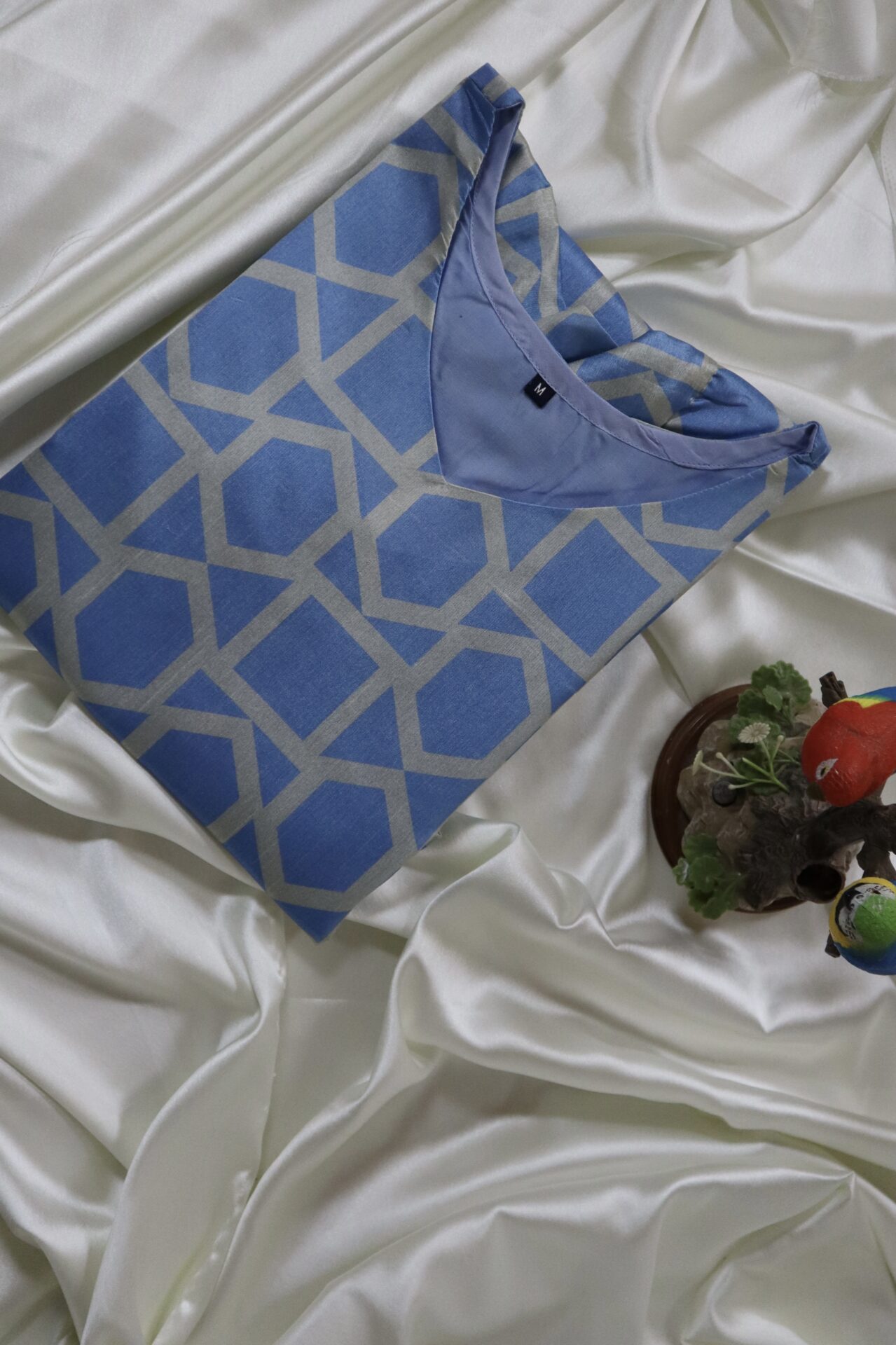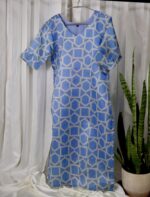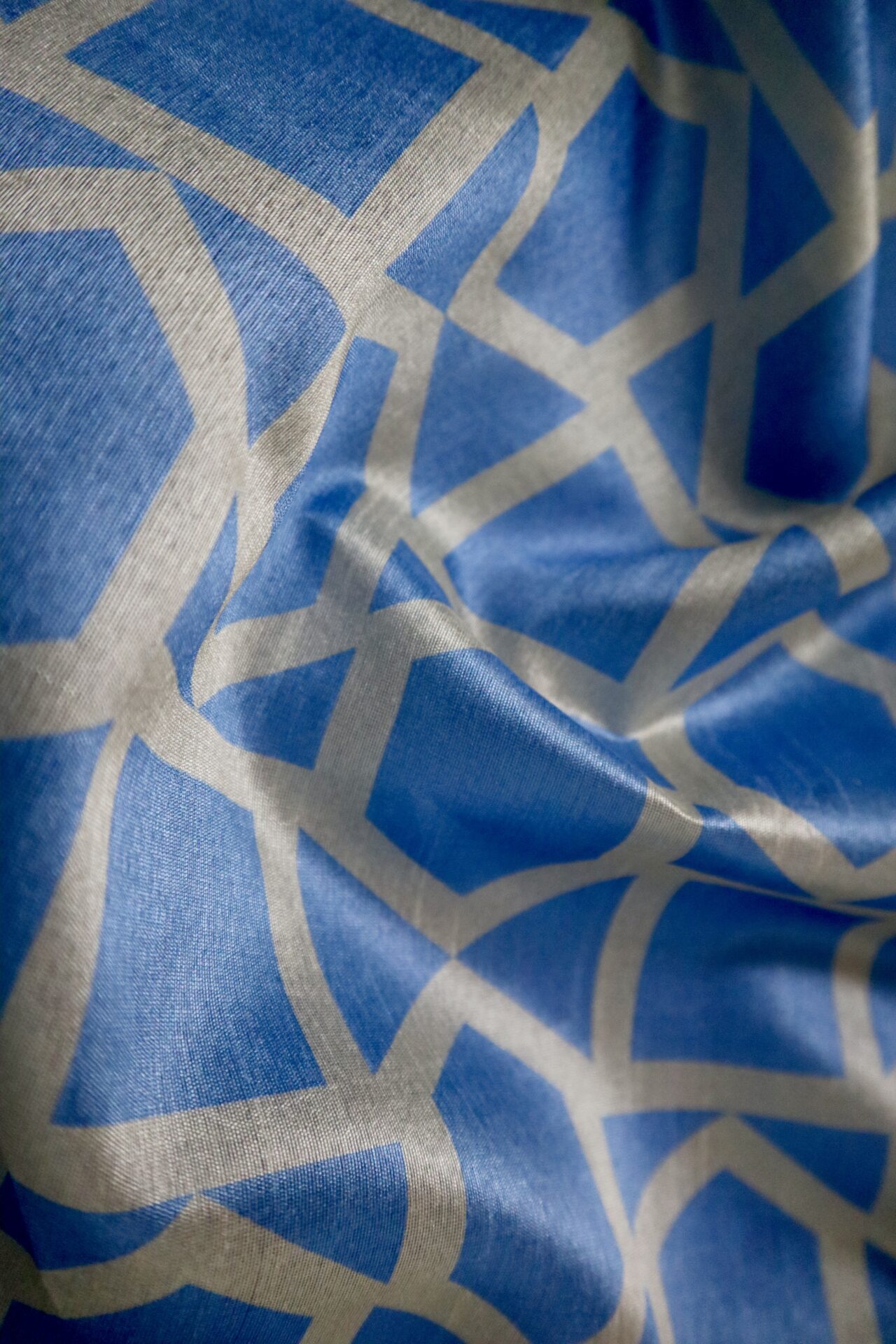 Inspired by the endless serenity of the sky, Celeste Weave is crafted from pure Tussar silk that glows with natural sheen. The geometric pattern in soft azure tones adds a touch of modern artistry, balancing structure with elegance. Perfect for daytime charm or evening grace.