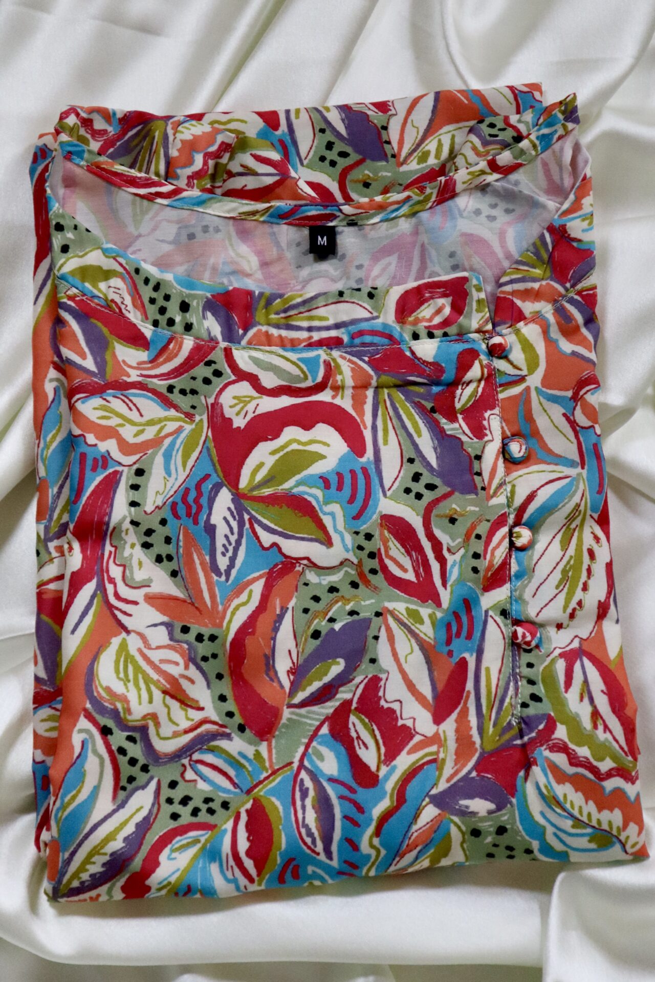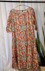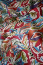 Grace meets ease in Coral Whisper — a pure muslin A-line dress that flows with effortless charm. Its vibrant botanical print captures the essence of tropical blooms, blending warm coral tones with playful accents of turquoise and lime.